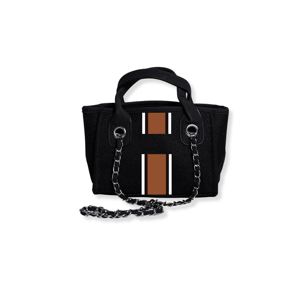 Effortlessly chic and minimal, the Mini All-Black Canvas Bag is a statement of simplicity. Perfect for those who love sleek, understated fashion, this mini-sized bag fits everything you need for your day. You can customize it with your own stripe colors and initials, adding a personal touch to the clean, monochrome design. With its one zipper and two inner pockets, it ensures you stay organized and stylish on the go.